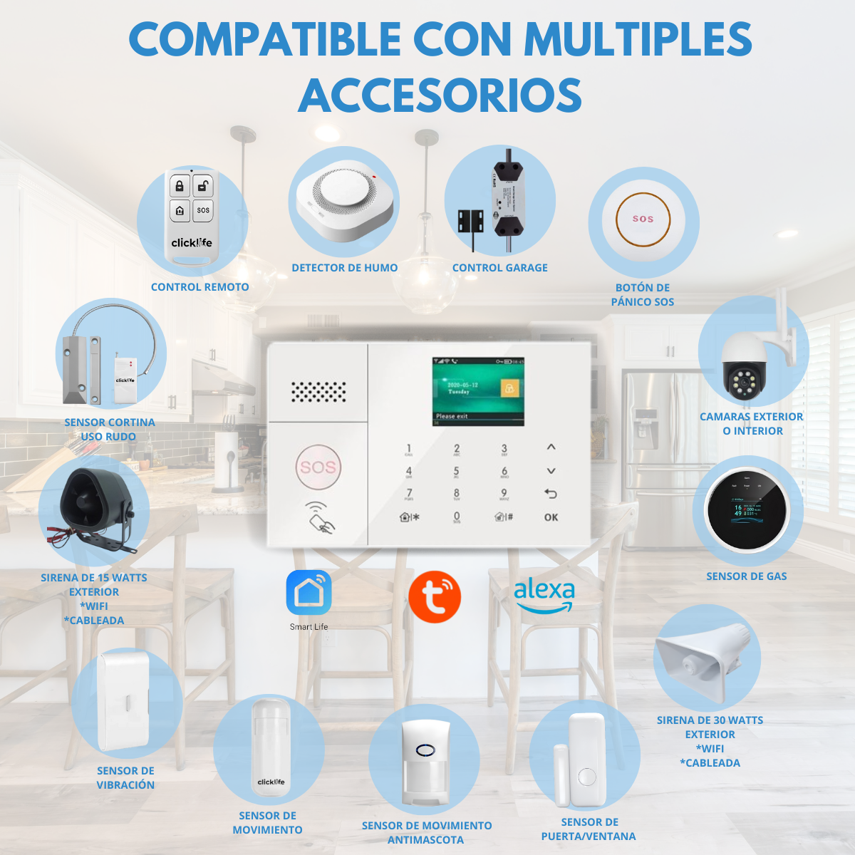 Compatible con dispositivos como Alexa, Google Home y diferentes aplicaciones, este sistema de alarma te permite controlar y monitorear tu seguridad desde cualquier lugar. Su alcance de cobertura de 50 metros y la posibilidad de conectar hasta 99 sensores lo convierten en una opción versátil y confiable para cualquier tipo de propiedad.