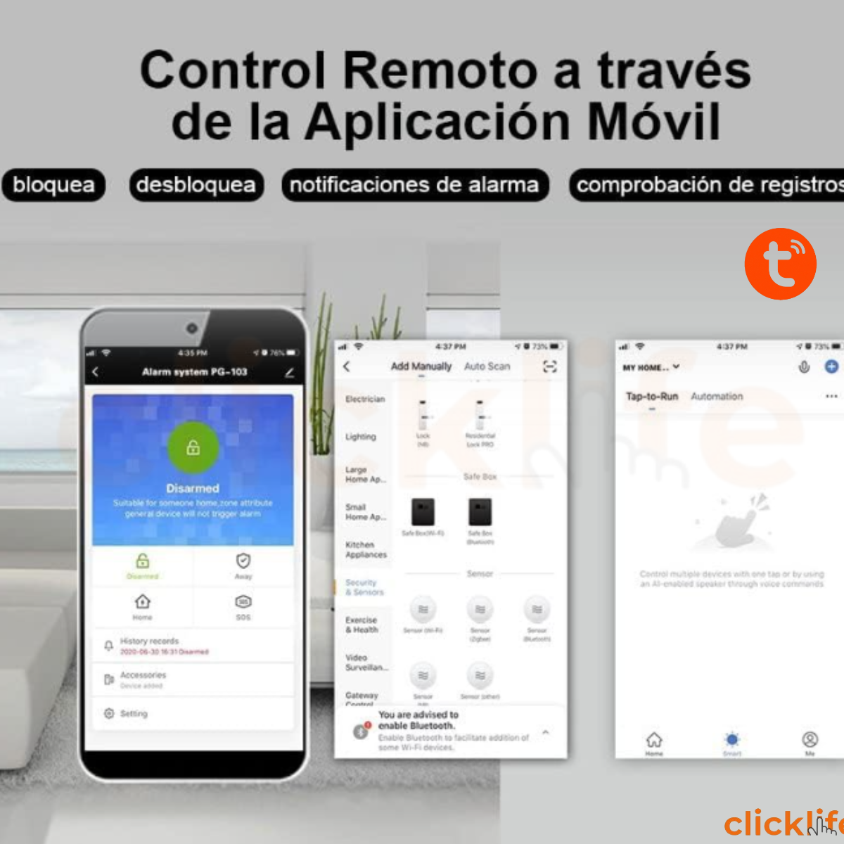 2. Se puede controlar desde la app en celular (Smart Life) , conectando la alarma por wifi al módem.