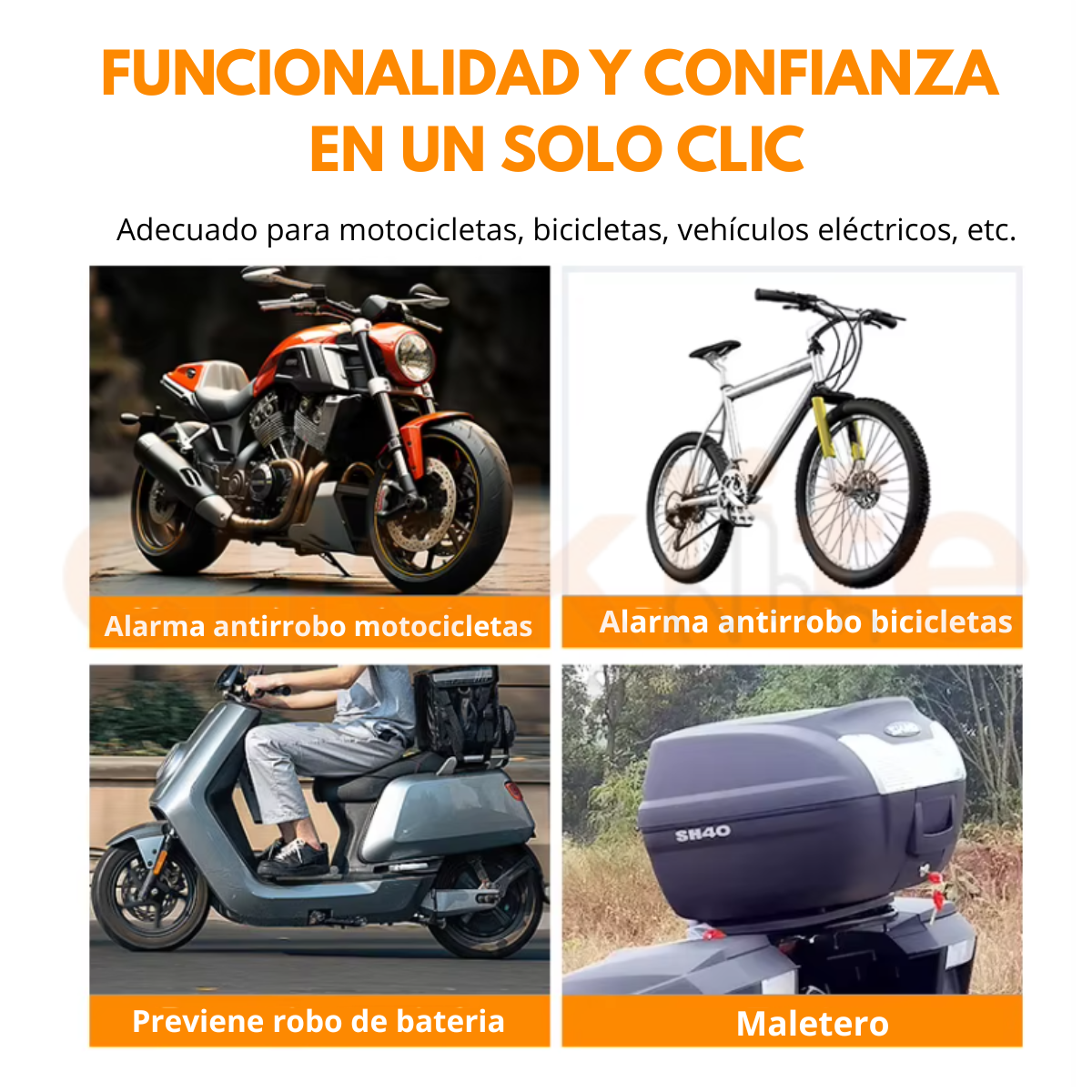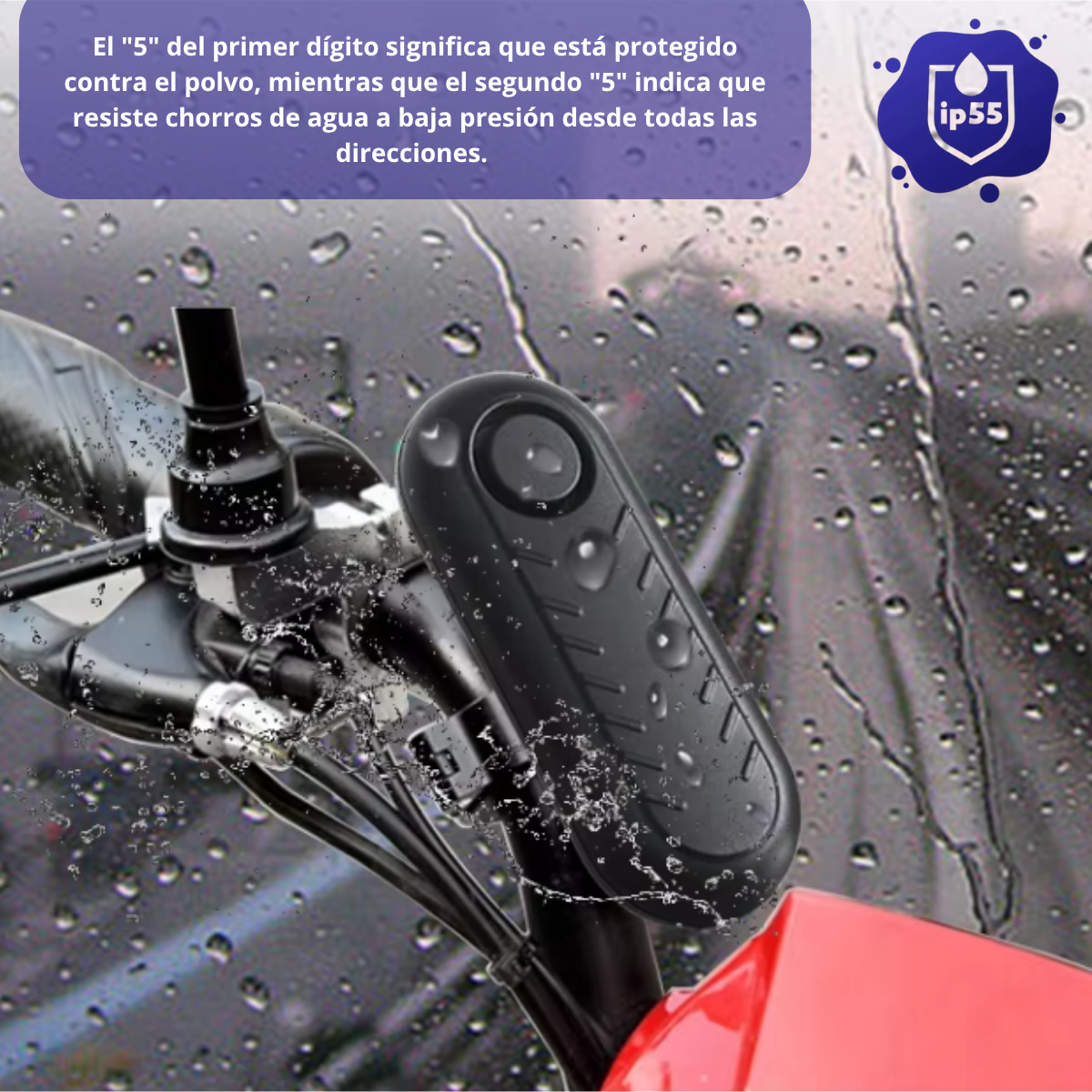 Esta alarma para bicicleta o vehículos eléctricos es impermeable cuenta con la certificación IP55 que le permite usarla al aire libre sin preocupaciones.