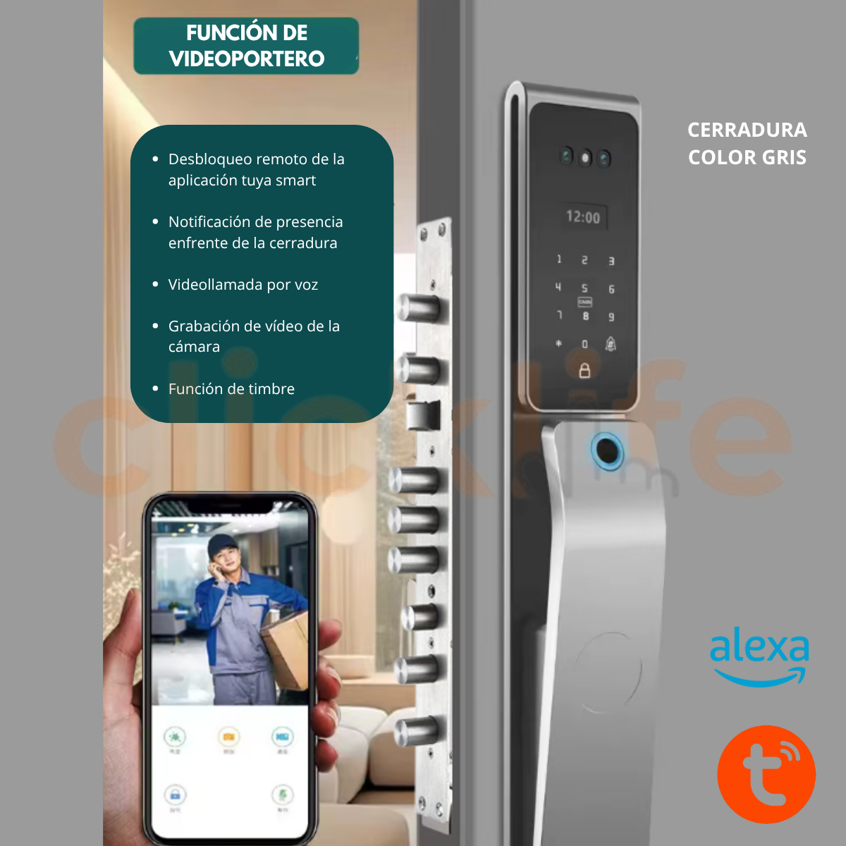 Cerradura Inteligente Impermeable IP65 Alexa 6 Modos de Apertura Con Reconocimiento Facial, Huella Dactilar Cerrojo Máxima Seguridad