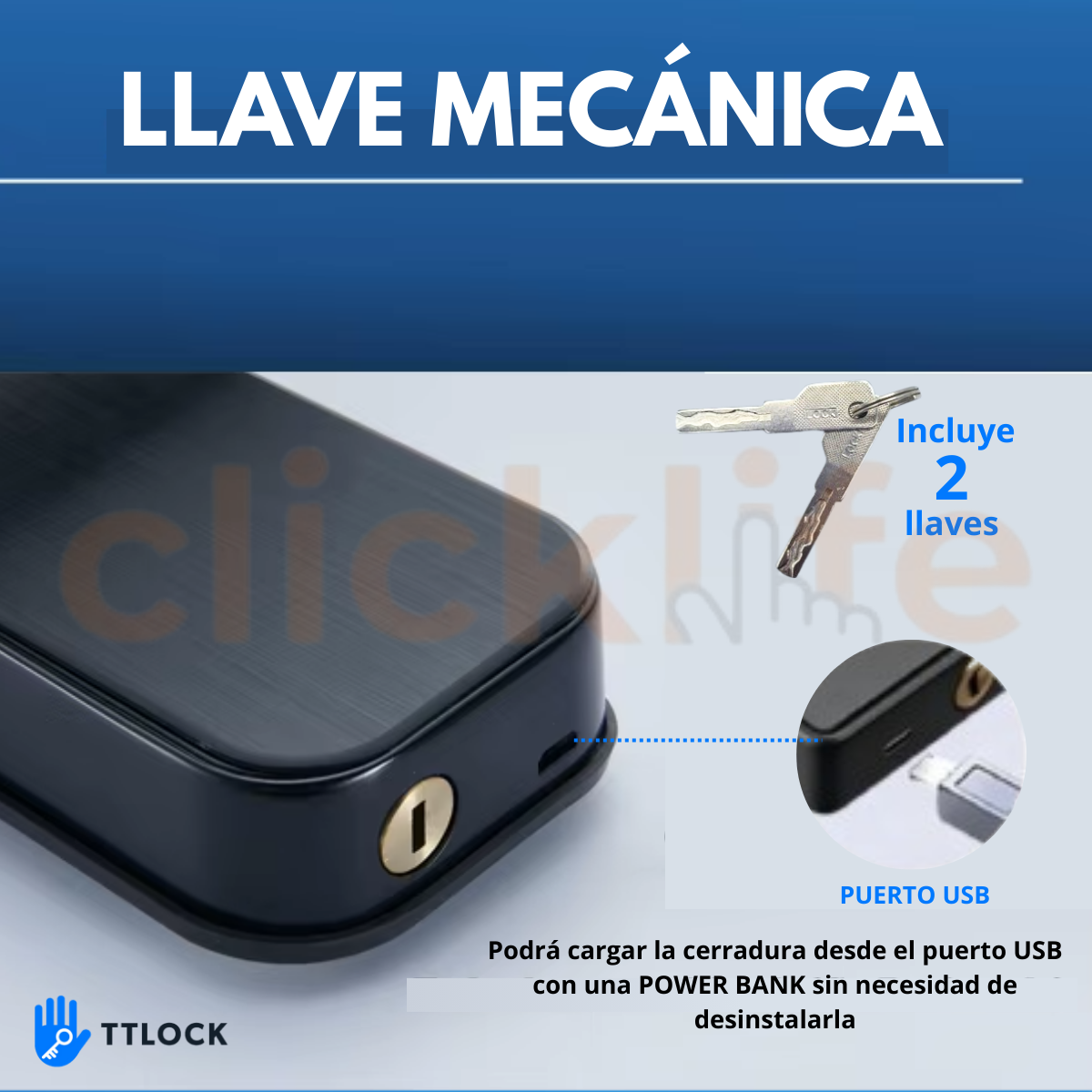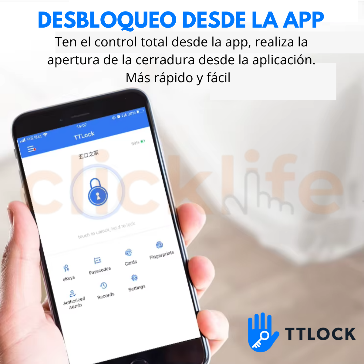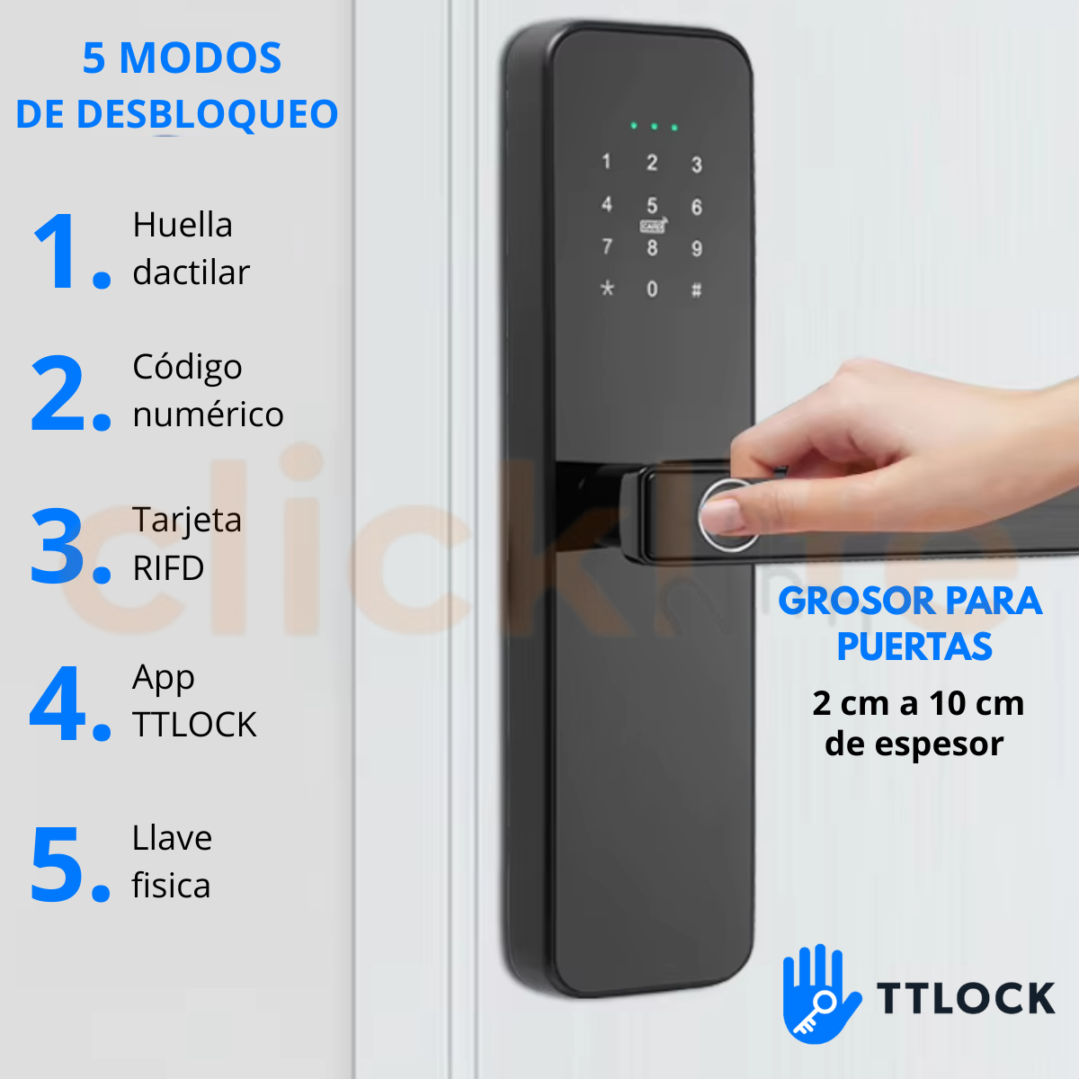 Métodos de apertura: App TTLock , huella, tarjeta RF, código numérico y llave física.