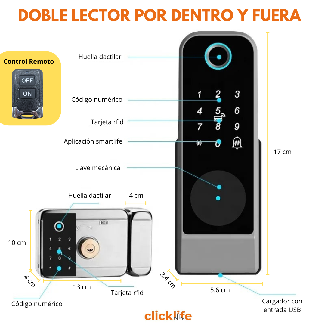 CERRADURA EXTERIOR INTELIGENTE WIFI CON TECLADO Y LECTOR DE HUELLA POR DENTRO Y POR FUERA, 6 MODOS DE APERTURA PARA EXTERIOR CON CONTROL REMOTO