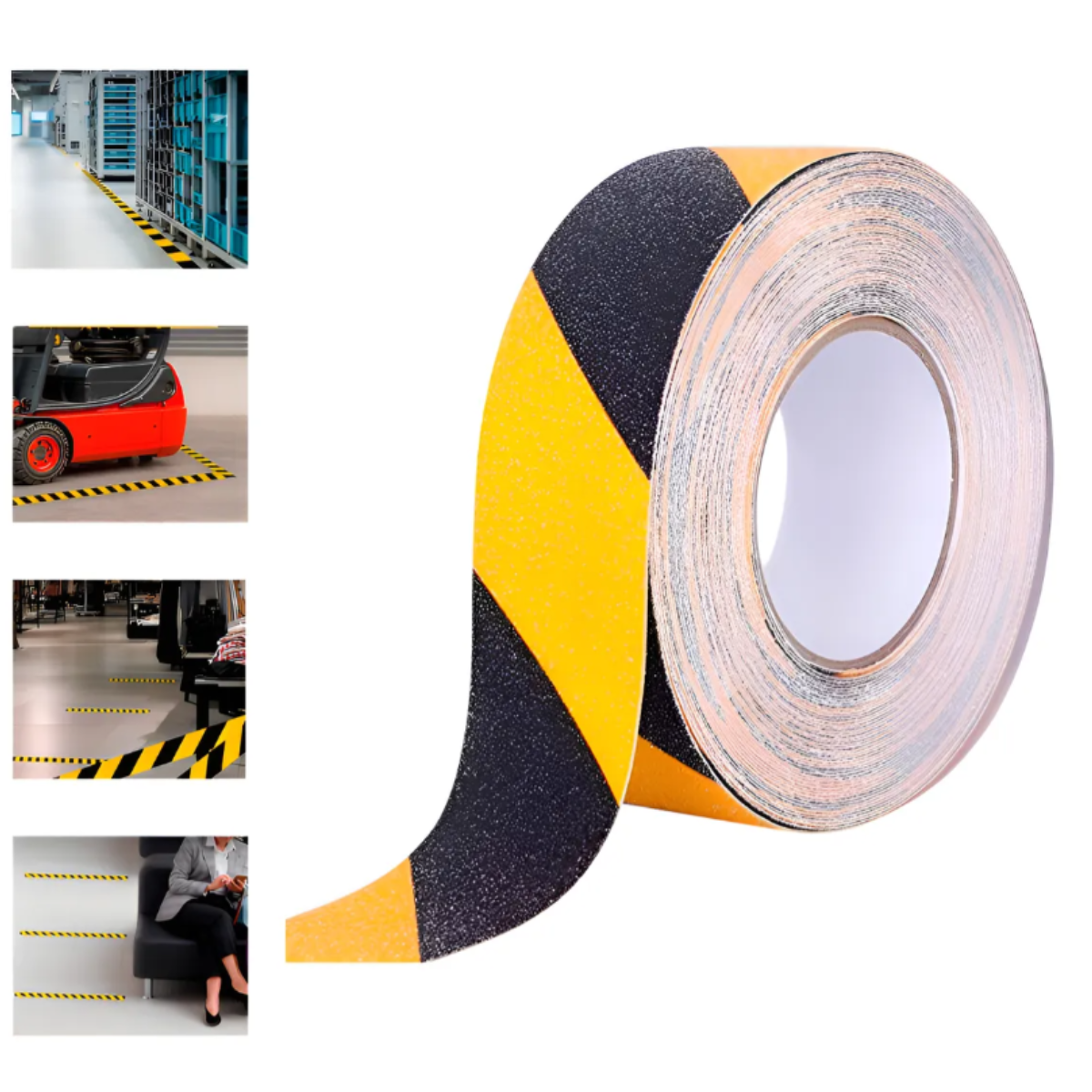 Fabricada con materiales resistentes, esta cinta ofrece un excelente agarre y durabilidad, manteniendo su efectividad a largo plazo frente a factores como el desgaste o condiciones climáticas adversas. Su adhesivo de alta resistencia asegura una aplicación fácil y permanente sobre superficies lisas, rugosas o irregulares. Con su diseño delimitante, puedes crear caminos seguros, zonas de advertencia y proteger áreas de alto riesgo.