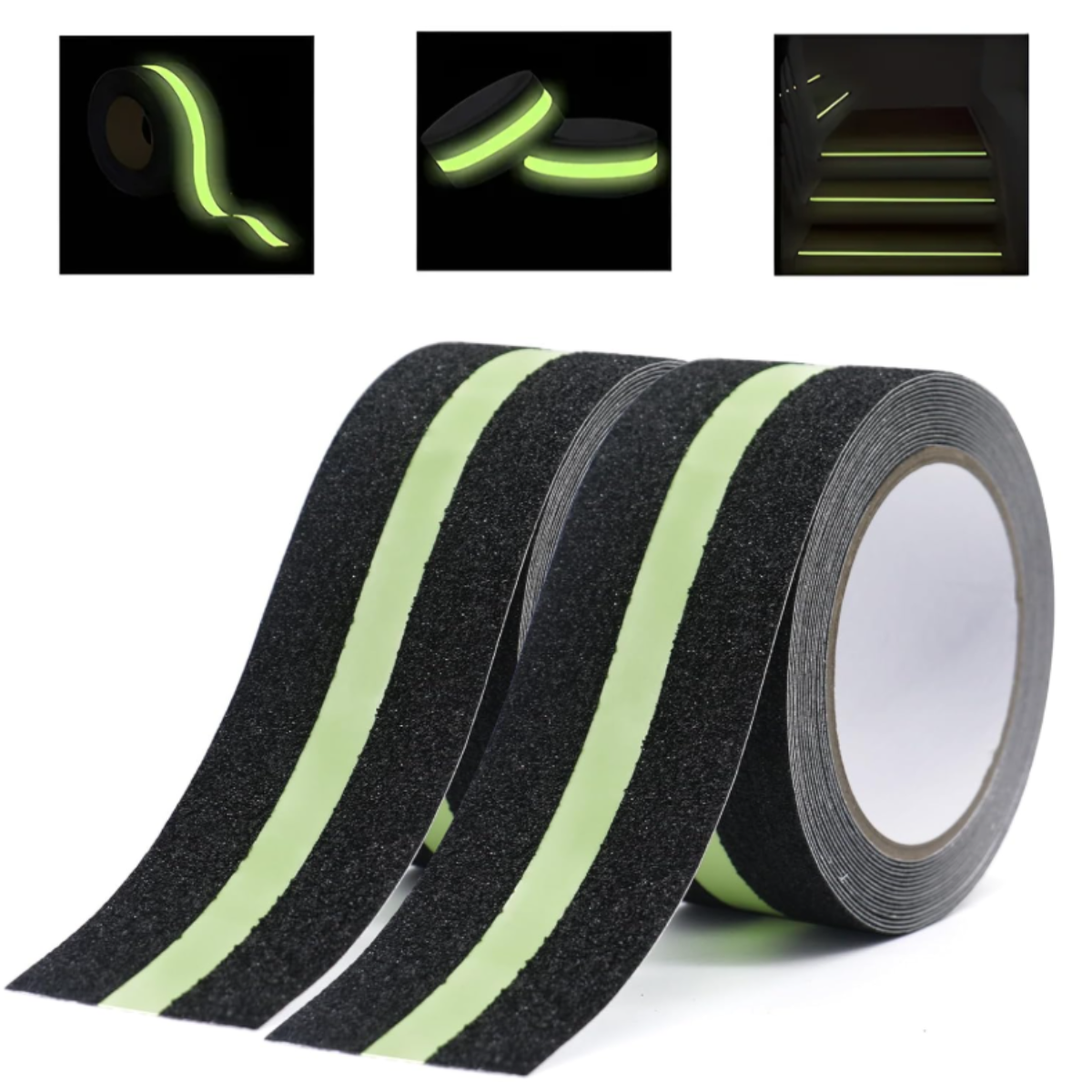 Las tiras antideslizantes para escaleras que brillan en la oscuridad están hechas de material que brilla en la oscuridad:material oscuro que absorbe la luz solar o la luz durante el día y brilla automáticamente por la noche,proporcionando marcas claramente visibles en la escalera para facilitar el caminar y la navegación por la noche.