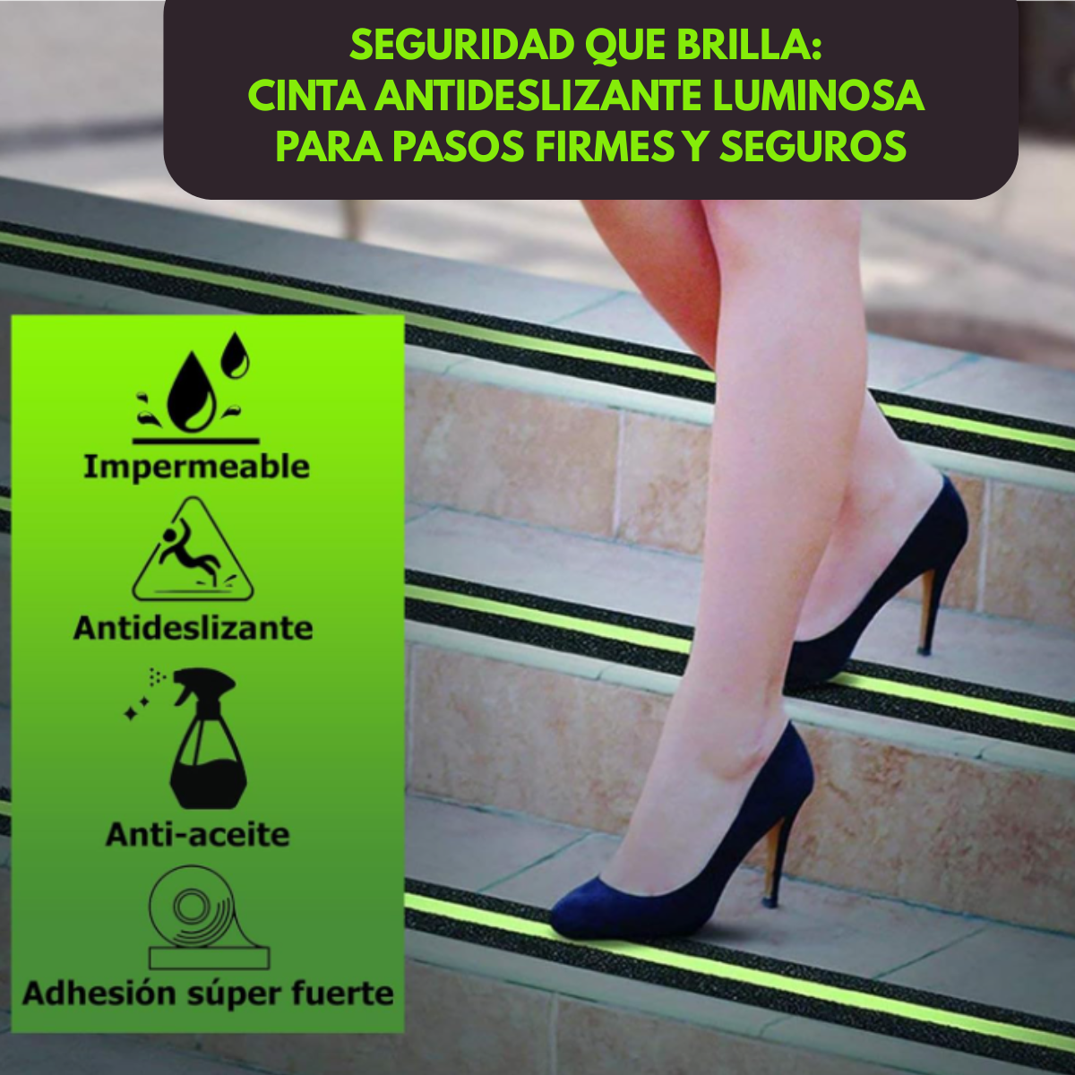 Cinta Antiderrapante Antideslizante Luminosa Resistente 5m