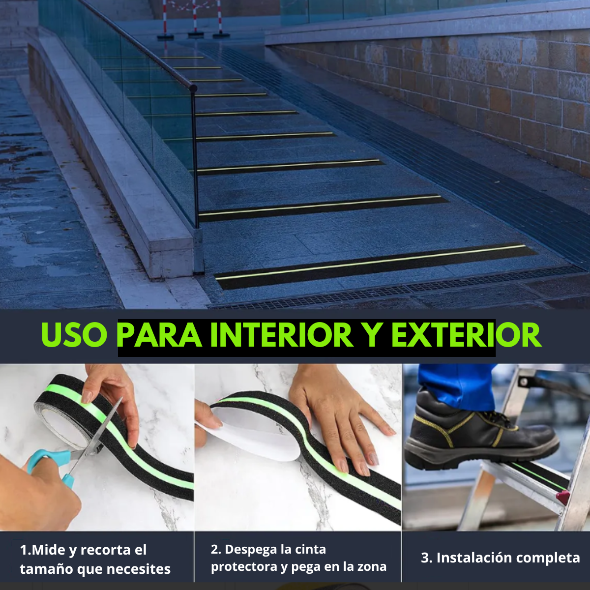 R3: La cinta antiderrapante tiene un ancho de 5 cm con 5 metros de largo