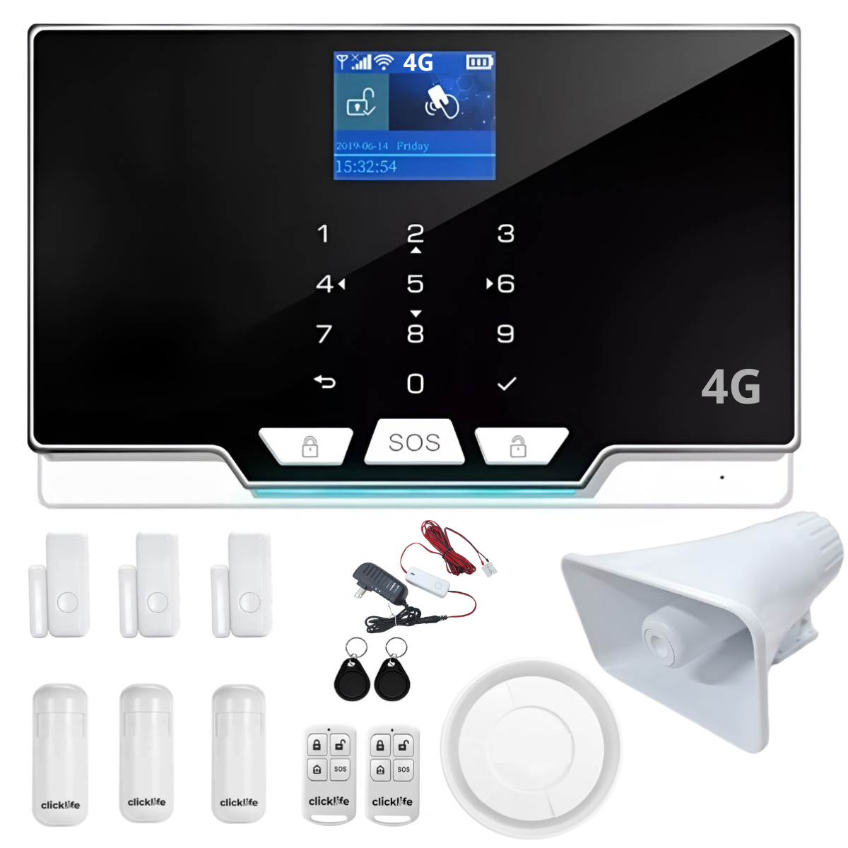 Panel De Alarma Casa Negocio Gsm 4G Wifi Inalámbrica Kit 6 Sirena Cableada 30 Watts Cableada
