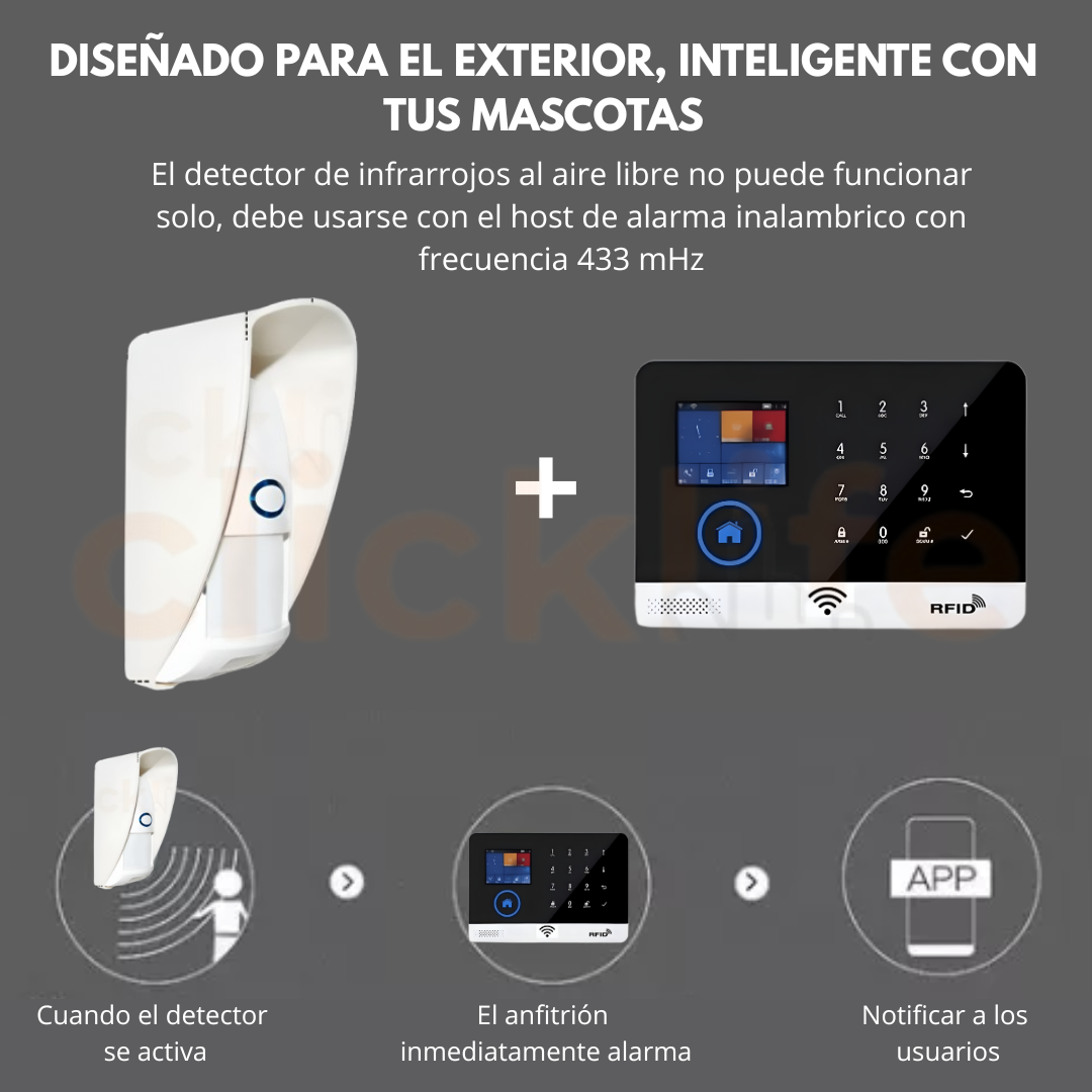 COMPATIBILIDAD: Con paneles de alarmas frecuencia 433 Mhz / ESTE SENSOR NO TRABAJA SOLO NECESITA UN PANEL RECEPTOR 433MHz. (no incluidos).