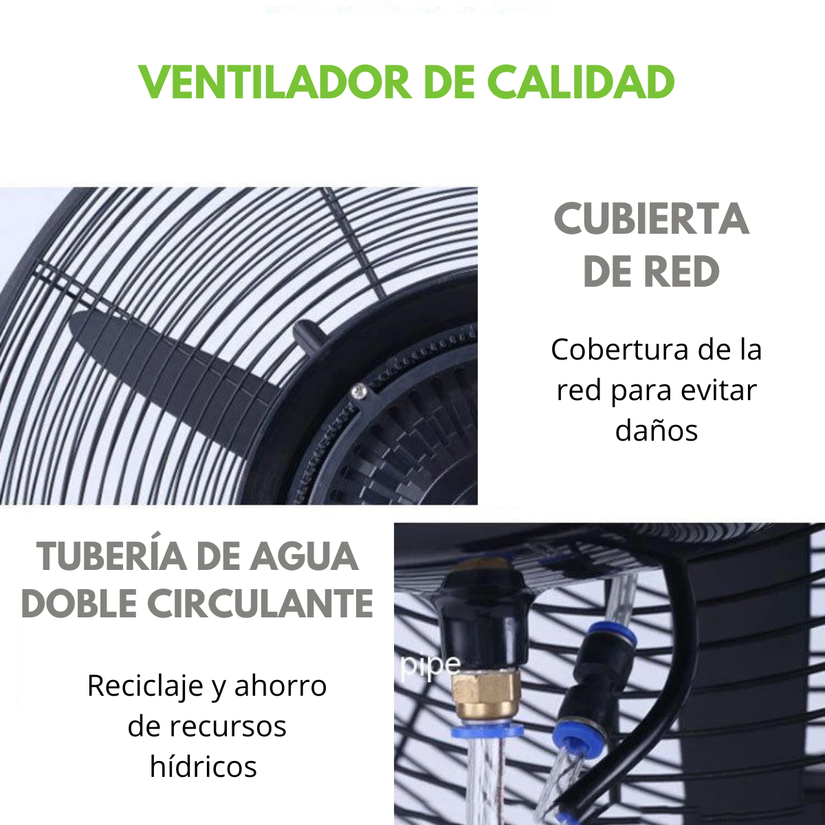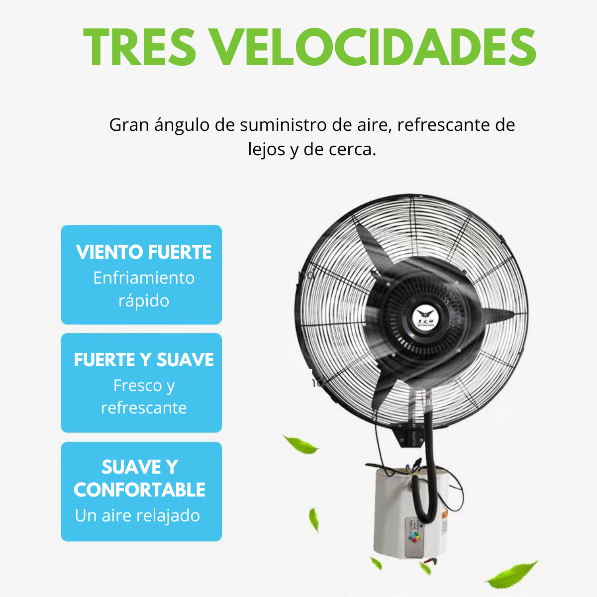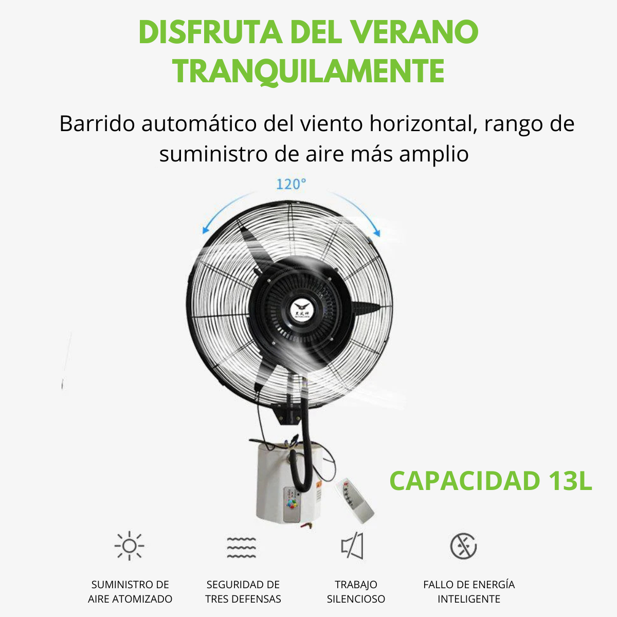 - Su tecnología de pulverización asegura que el aire circulante no solo sea fresco, sino también humidificado, lo que lo convierte en un aliado perfecto durante los días calurosos.