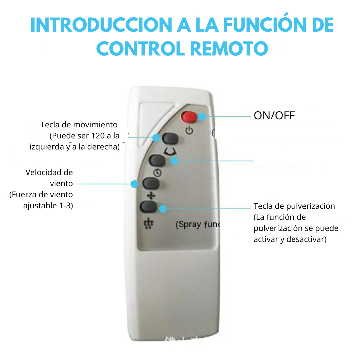 - La función de Rociador tipo Brisa es sinónimo de calidad, fusionando tecnología y diseño para ofrecer un producto que cumple con las expectativas de un público exigente que busca eficiencia y funcionalidad en sus equipos de ventilación puede estar es espacios abiertos o cerrados.