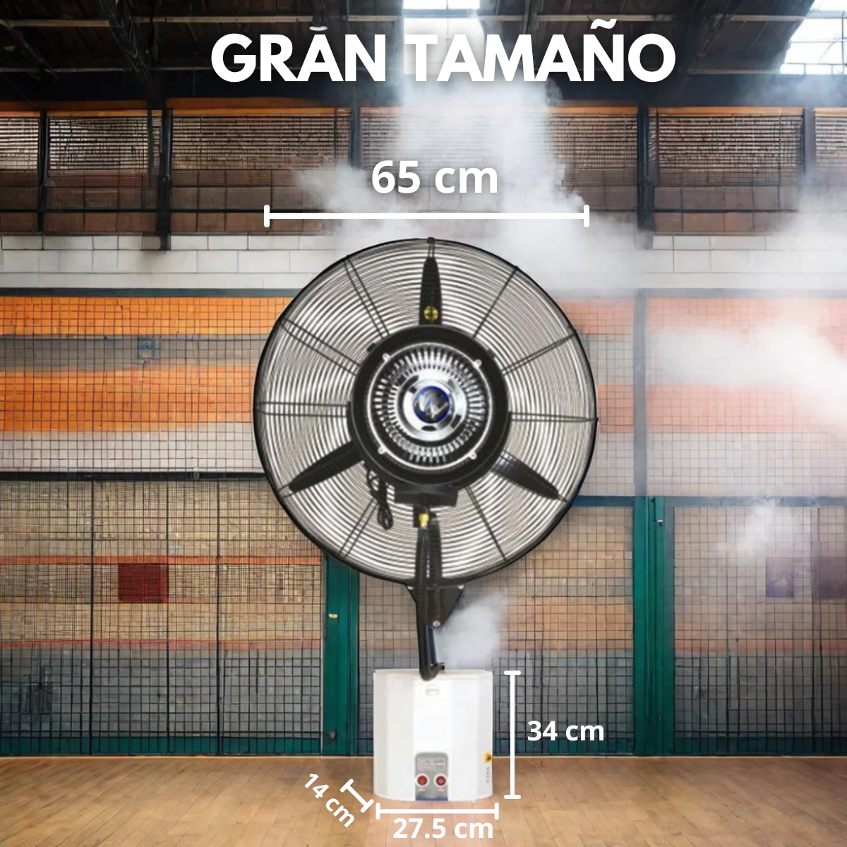 - Fácil colocación en la pared o techo de cualquier espacio en que lo necesite, este ventilador trae su depósito de agua de 13L para poder empotrarlo y tenerlo en un espacio seguro