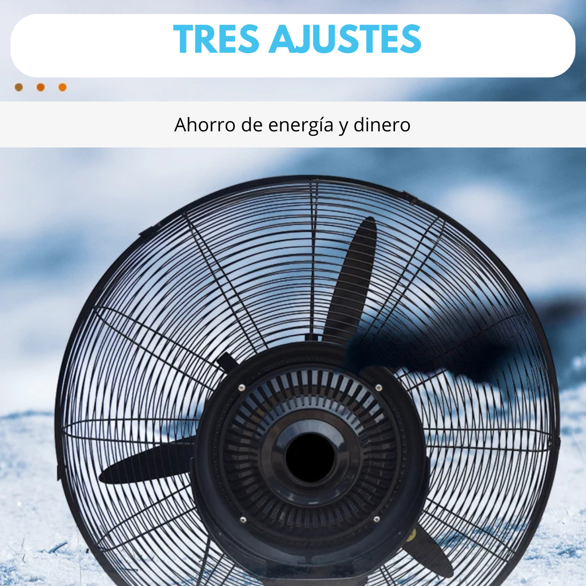 - Equilibrando potencia y eficiencia, este ventilador cuenta con una clasificación energética A+, lo que significa que su funcionamiento no solo beneficia a tu comodidad, sino también al ahorro en consumo eléctrico. Las tres velocidades ajustables te permitirán personalizar el flujo de aire según tus necesidades, mientras que su nivel de ruido de 0dB asegura un ambiente tranquilo, ideal para trabajos industriales o actividades en el hogar.